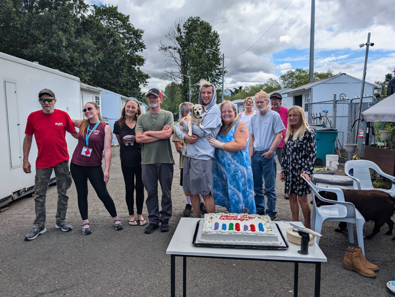 Outsiders Inn now operates two supportive Safe Stay Communities for people experiencing unsheltered homelessness. The Outpost, our first location, opened in December 2021, located at 11400 N.E. 51st Circle on city-owned right of way along an undeveloped cul-de-sac in the North Image neighborhood.