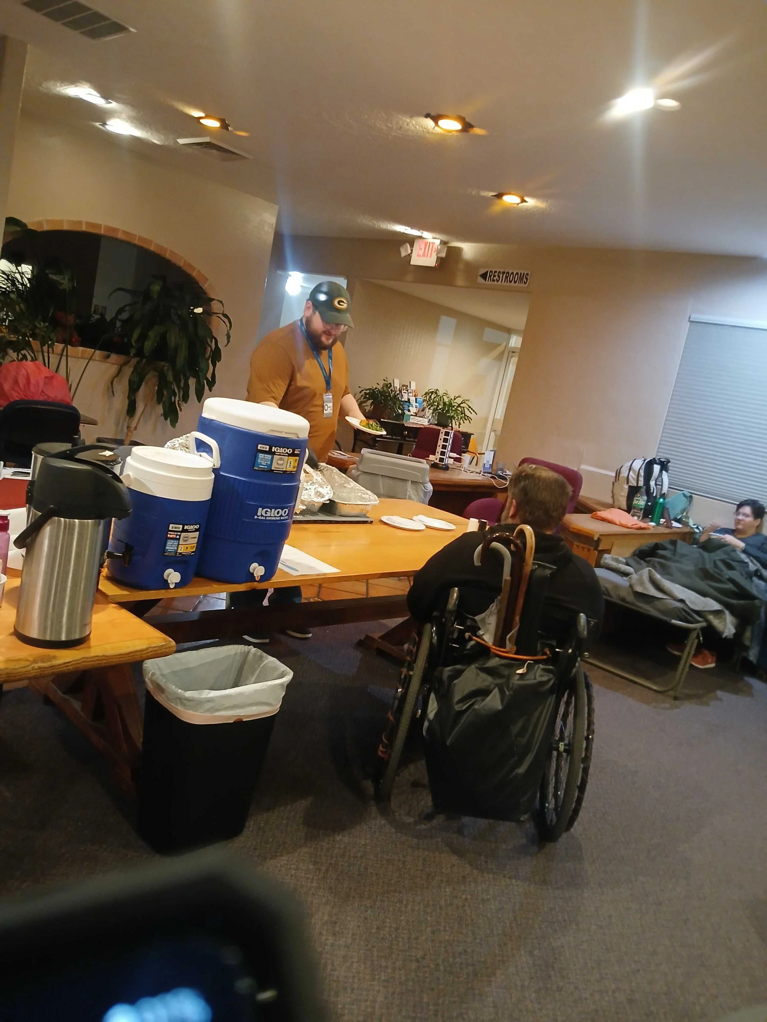 The Satellite Overflow Shelters (SOS) extend the winter shelter capacity and are open every night during the winter. They accept all genders, couples and a limited number of well-behaved pets. They are staffed by Outsiders Inn AND supported by volunteers during evening and morning shifts and for making, bringing and serving the evening meals to locations.